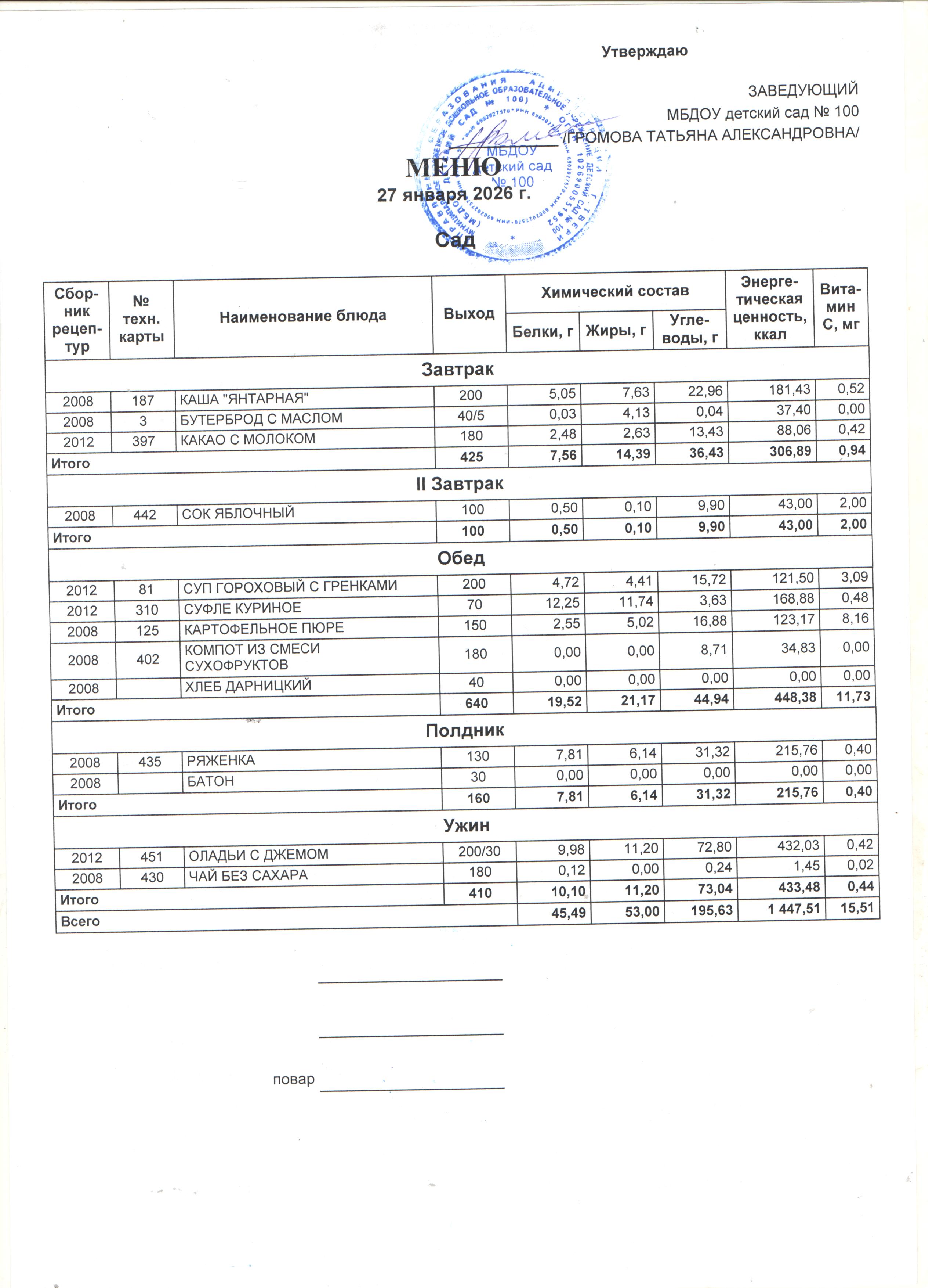 Ответы на вопросы родителей по питанию можно получить по телефону МБДОУ детского сада № 100: 8(4822) 52-14-76