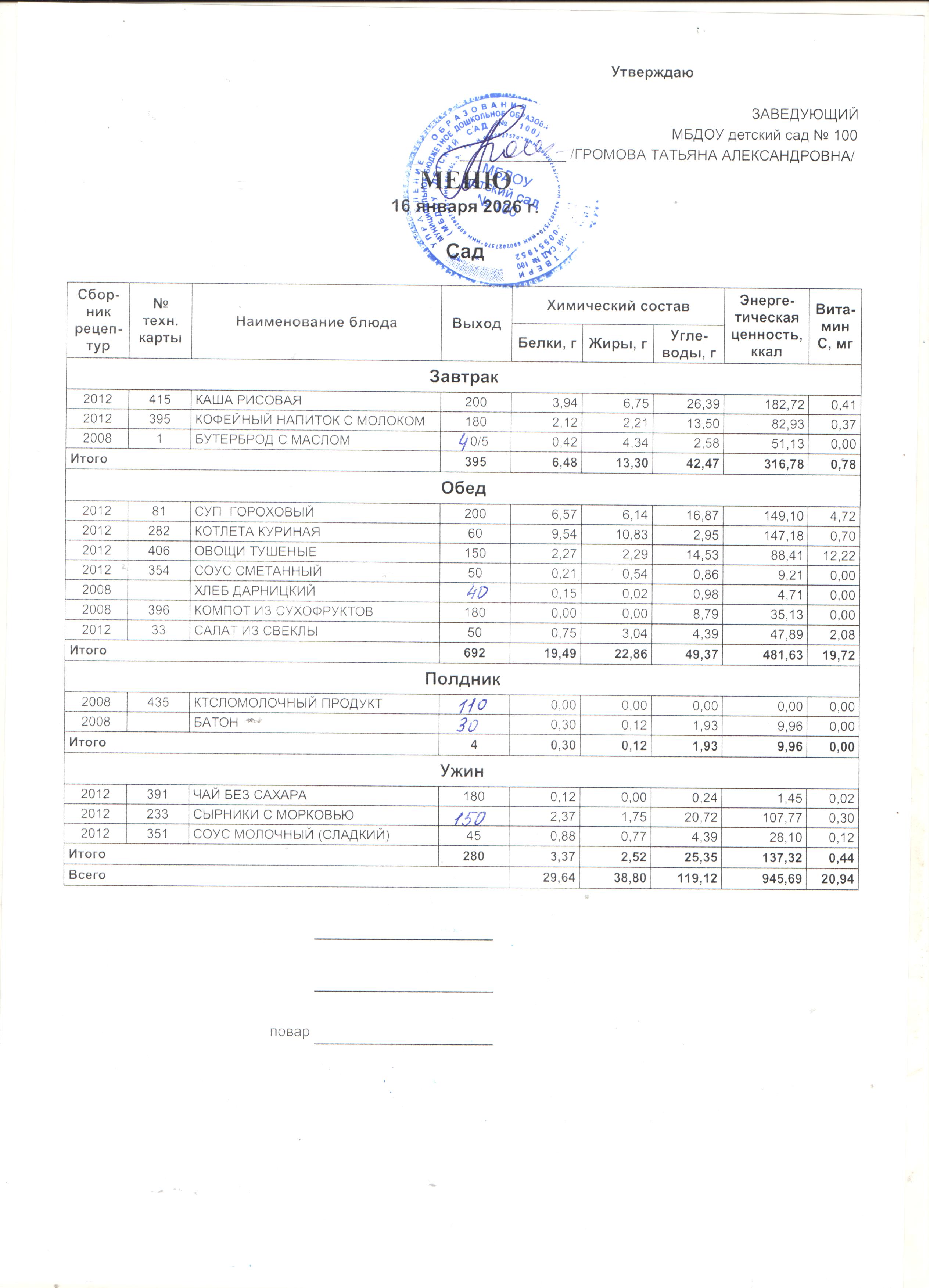 Громова Татьяна Александровна, Заведующий МБДОУ детский сад № 100 Телефон: +7 482 252-14-76 E-mail: ds100@detsad.tver.ru
